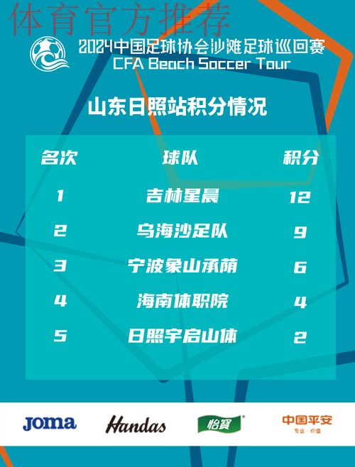 2024沙足巡回赛山东日照站掀起海滨狂潮 吉林星晨再登之巅 黄金沙滩在暮色中渐渐褪去炙热,潮声与呐喊交织成一首独属于夏天的乐章。2024沙足巡回赛山东日照站在这样的氛围中收官,而最耀眼的光芒,再